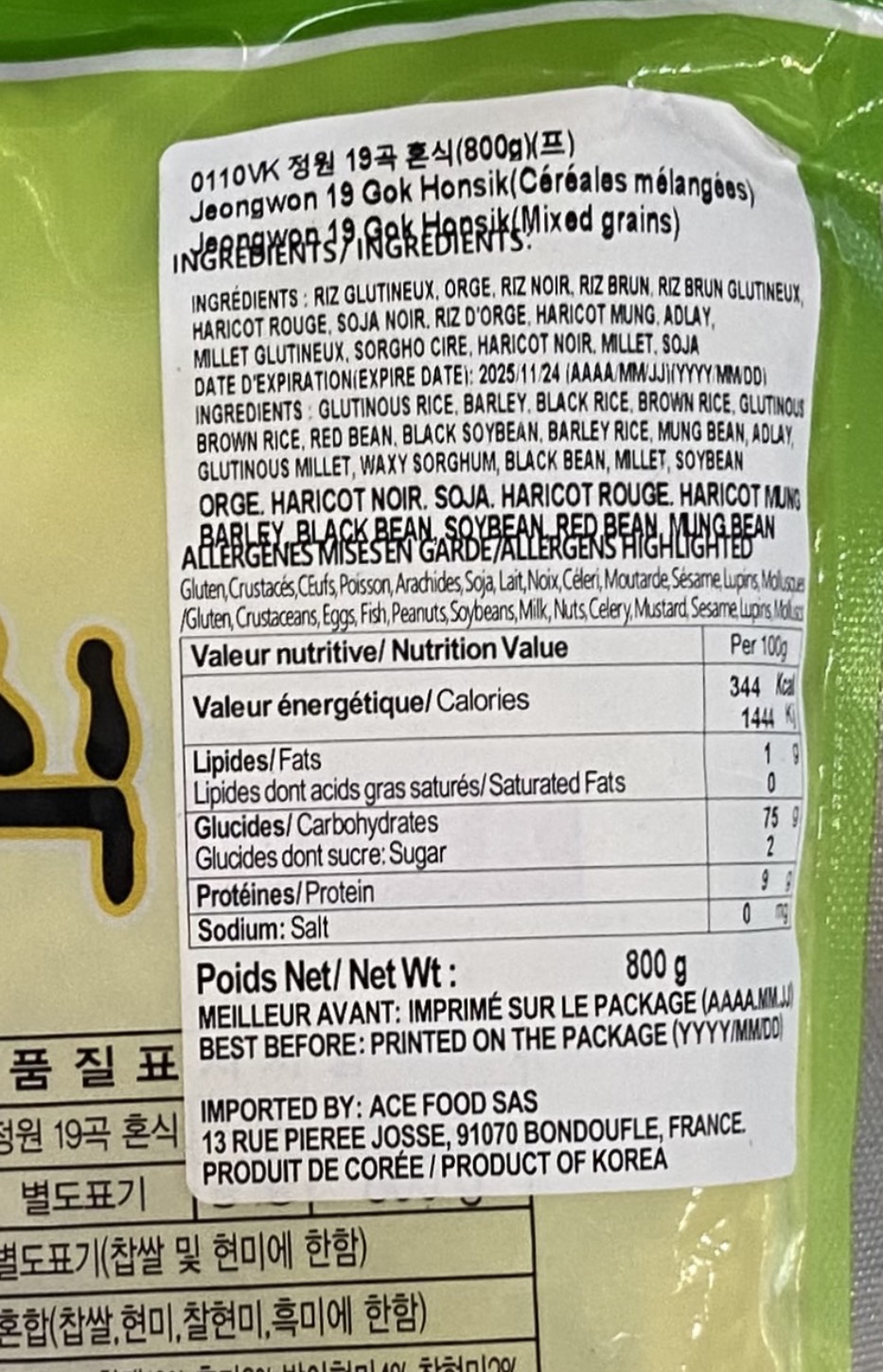 Des céréales mixtes qui complètent les nutriments manquant au riz. Les légumineuses grossières sont broyées à la taille des grains de riz pour pouvoir être mangées avec désinvolture. Ajoutez environ 20 à 30% du riz, mélangez uniformément et lavez-le légèrement.