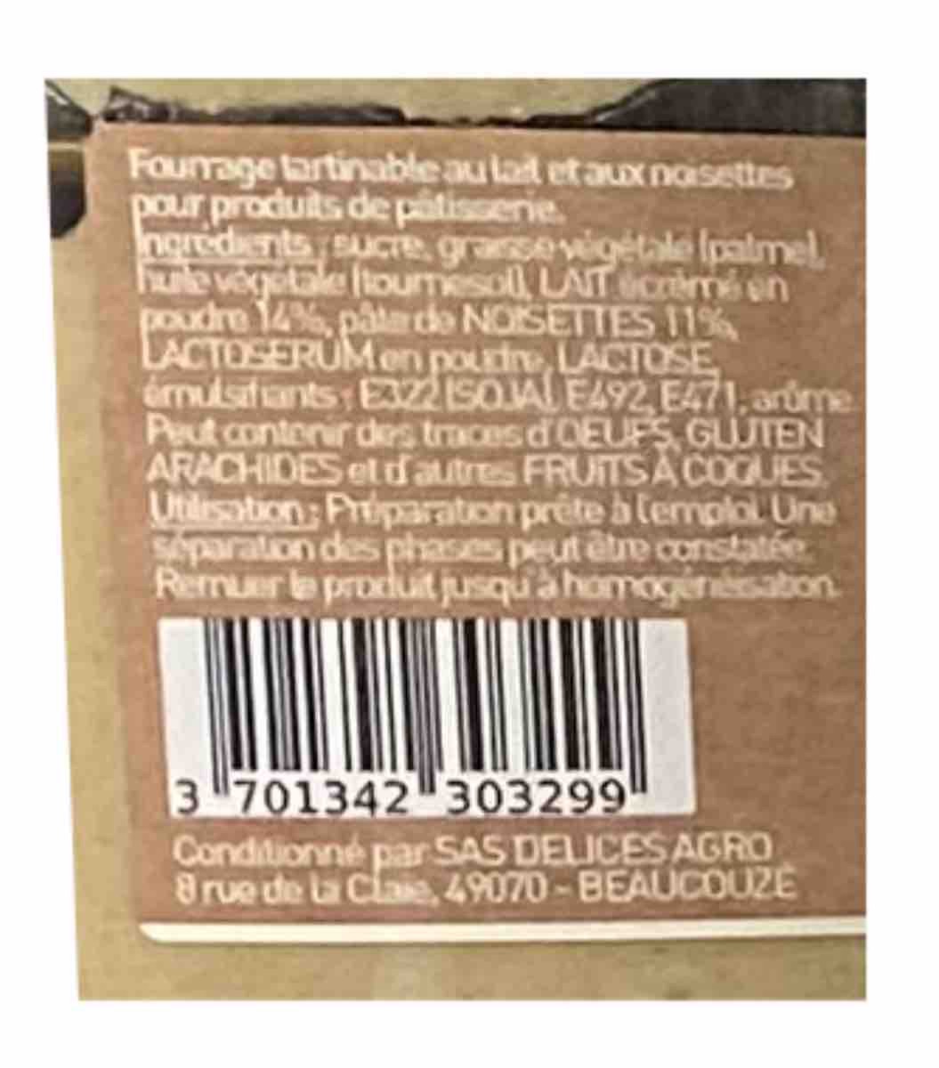 Crème onctueuse à la saveur de noisette et de chocolat blanc qui peut être utilisé en fourrage prêt a l'emploi ou à déguster directement.